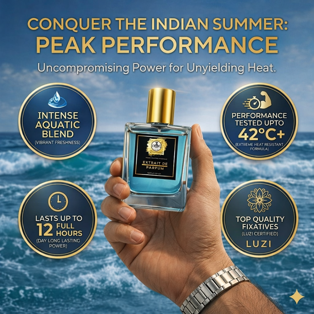 Tested in 35โ45ยฐC conditions, this Extrait formula maintains stability, projection, and longevity even in Indian Summer and High Heat environments.