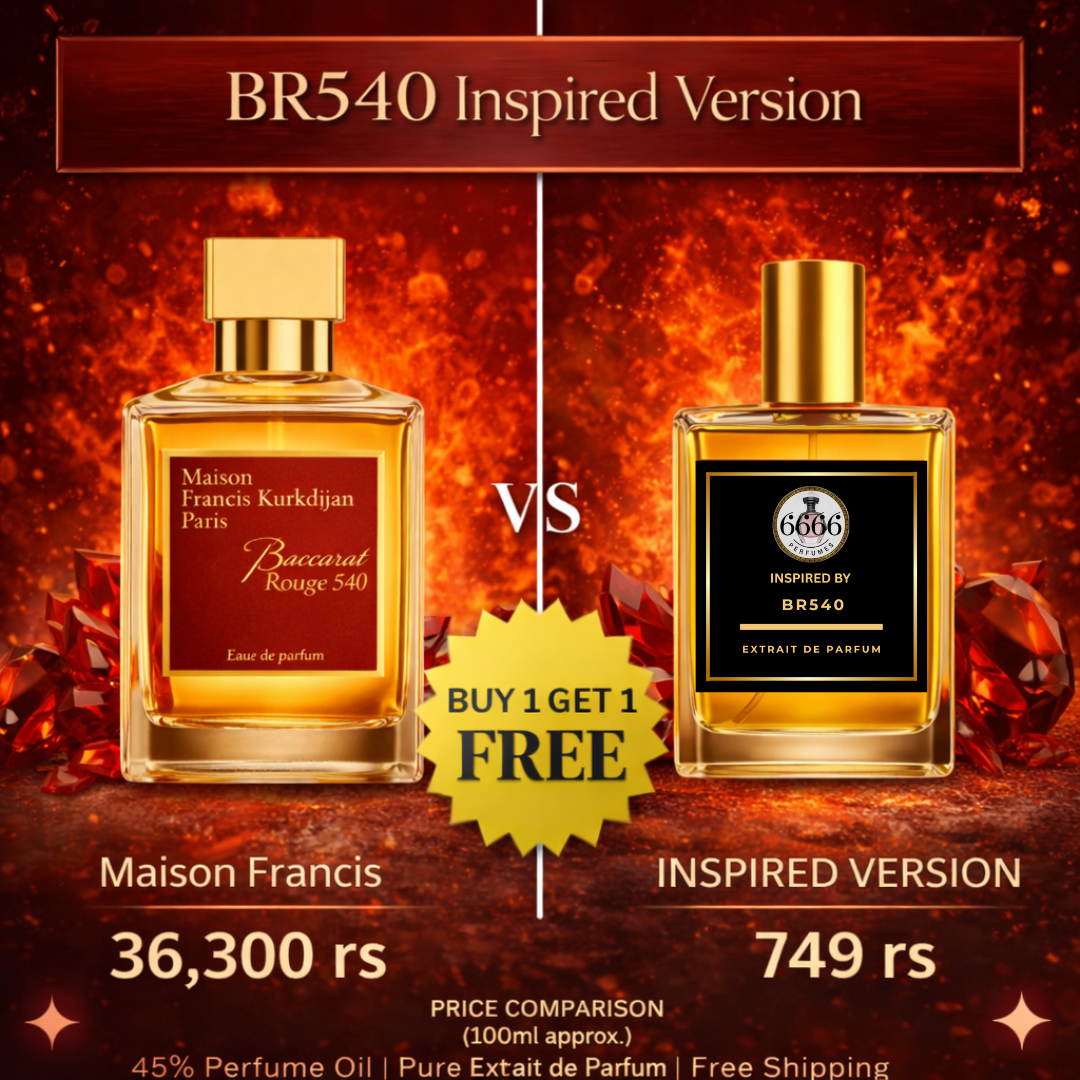 Looking for the best Baccarat Rouge 540 inspired extrait in India? Our BR 540 inspired Superior Extrait (45% to 50%) delivers long-lasting amber-woody luxury with saffron, jasmine and ambroxan clarity — engineered for Indian heat and built to be your signature scent.