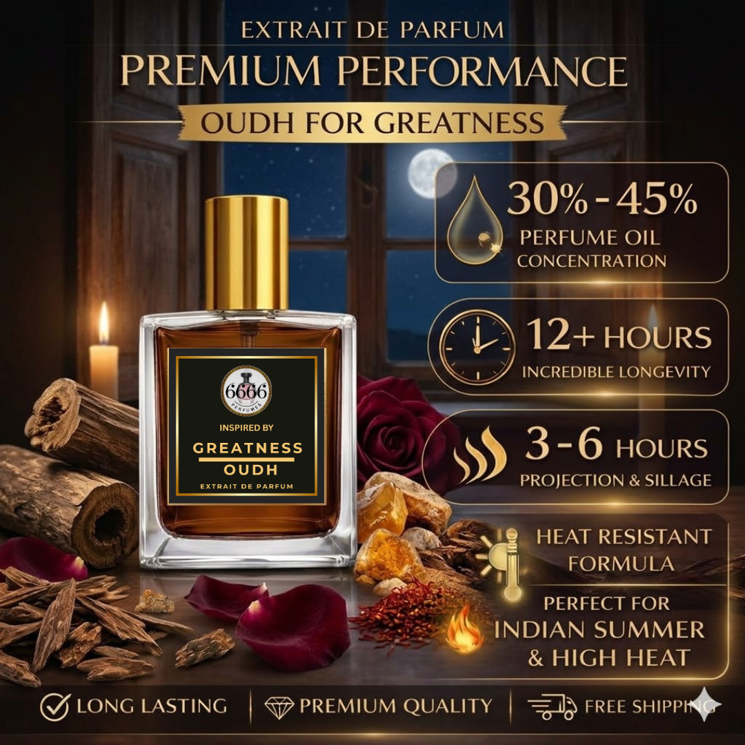 Yes. This Oud For Greatness inspired perfume India edition is designed to remain stable even in Indian Summer and High Heat conditions where temperatures may exceed 35–45°C. The dense extrait oil concentration slows evaporation and helps the fragrance maintain projection for longer periods.