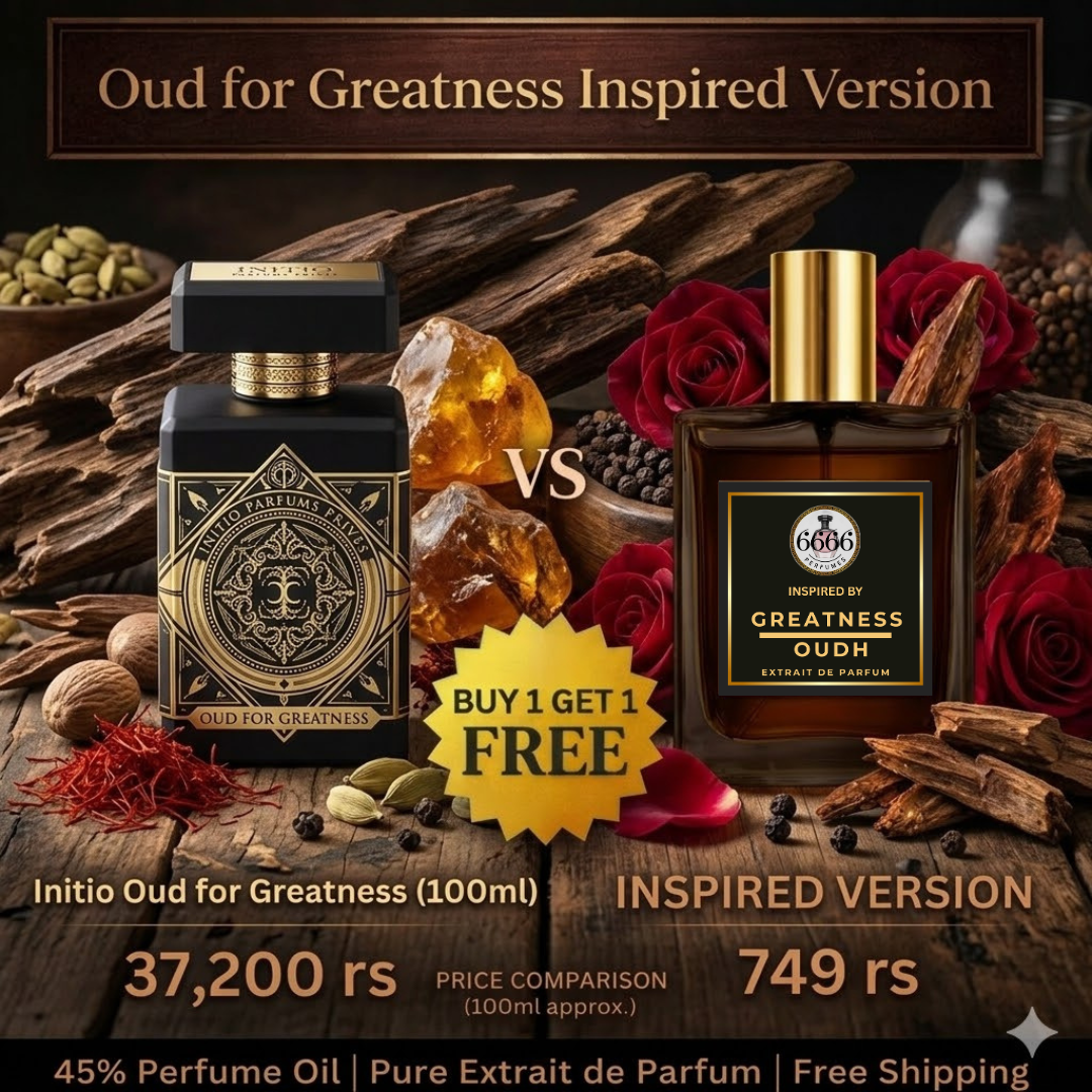 Searching for the best Oud For Greatness inspired perfume India offers? This high-performance Extrait de Parfum is designed for fragrance lovers looking for a powerful Initio Oud For Greatness dupe India with elite projection, luxury depth, and signature scent authority. Crafted in true Extrait strength with 30% to 45% oil concentration, this Oud For Greatness alternative India edition blends saffron spice, aromatic lavender, warm nutmeg, and deep agarwood oud to create a bold oriental fragrance that performs exceptionally in Indian winter evenings, luxury gatherings, and high-profile social events.
