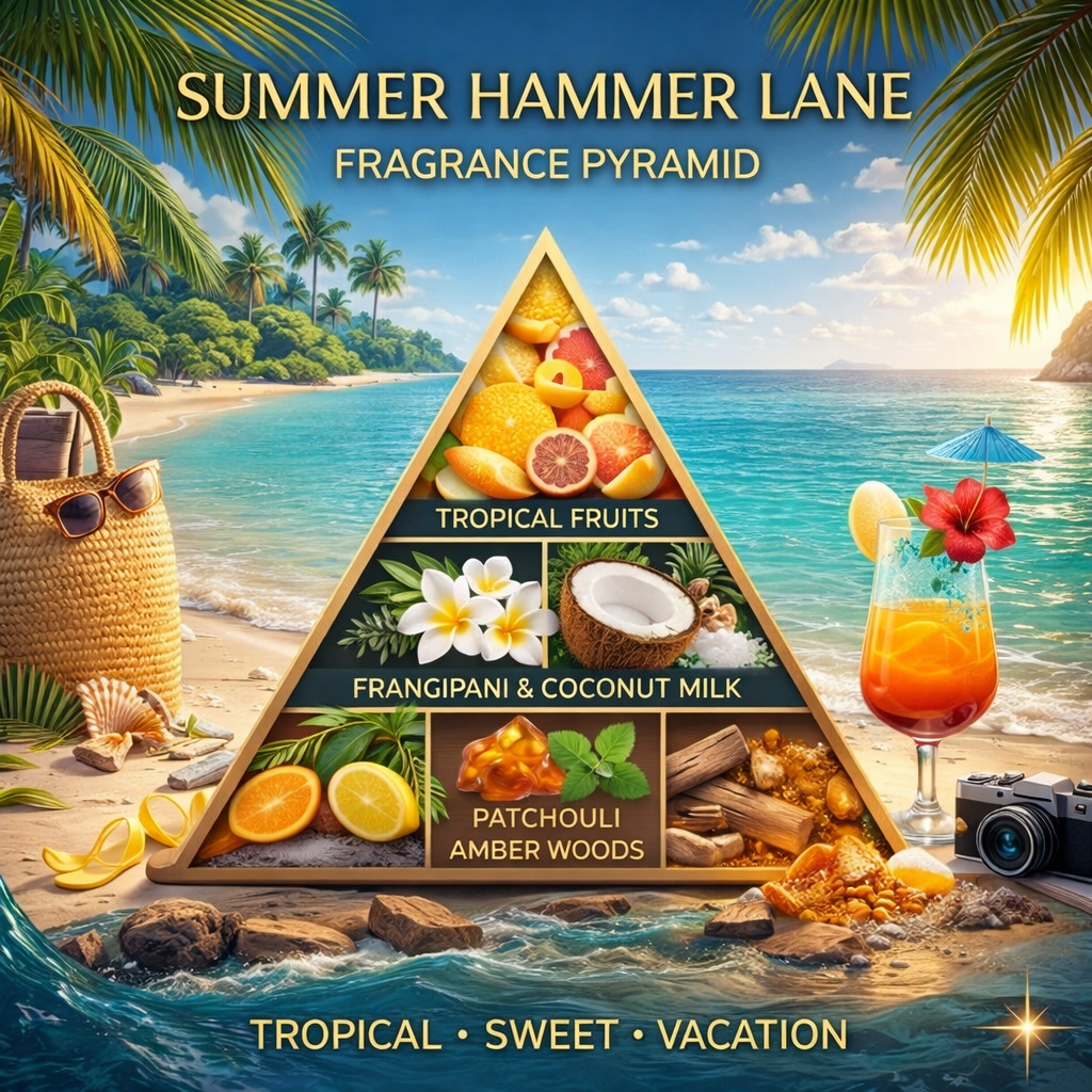Summer Hammer belongs to the citrus aquatic fragrance family. These fragrances combine bright citrus notes with marine freshness and clean musks, creating a refreshing scent that works especially well in warm weather.