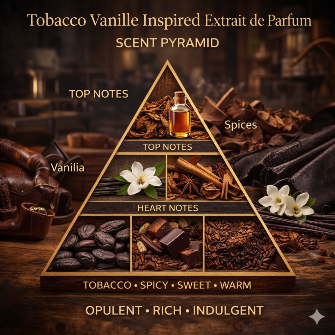 Unlike low-cost clones that focus only on sweet top notes, this Extrait is built for full tobacco-vanilla development and climate stability.