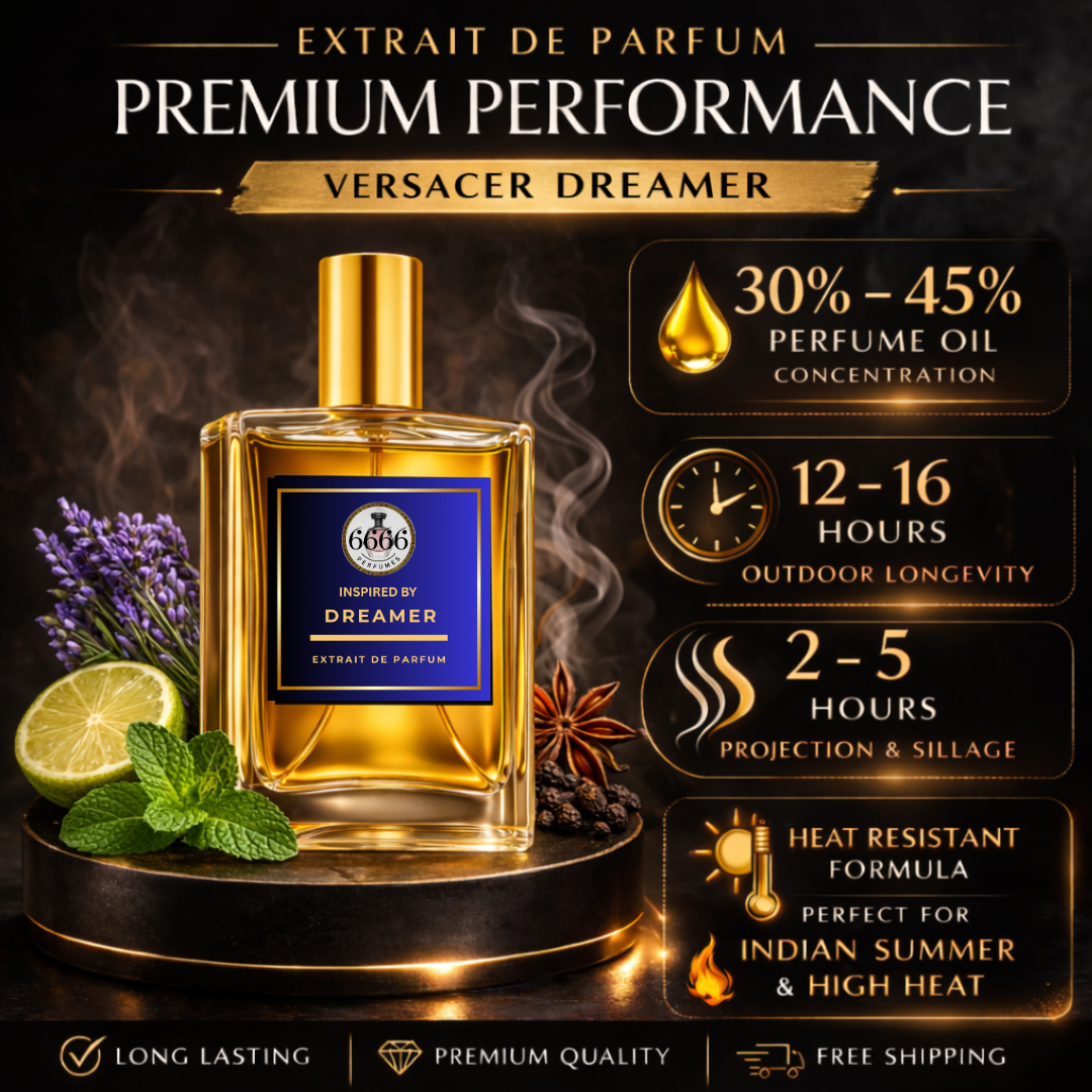 Many cheap Dreamer clone India options replicate only the soft floral opening. At 6666 Perfumes, this Dreamer inspired formulation is engineered in true Extrait strength (30% to 45%) for stronger longevity, climate stability, and structured tobacco warmth.
